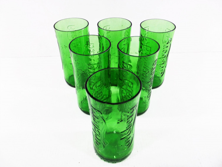 A set of 6 green glasses from CARLSBERG beer glass bottles. Decorative glasses that will definitely surprise your guests.