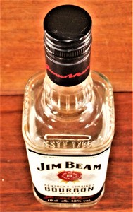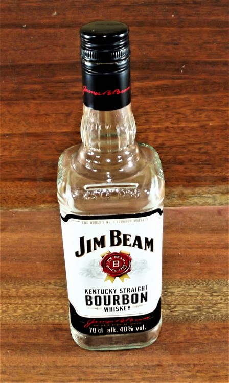 Piggy bank made by hand from a JIM BEAM glass bottle with a capacity of 0.7 liters.