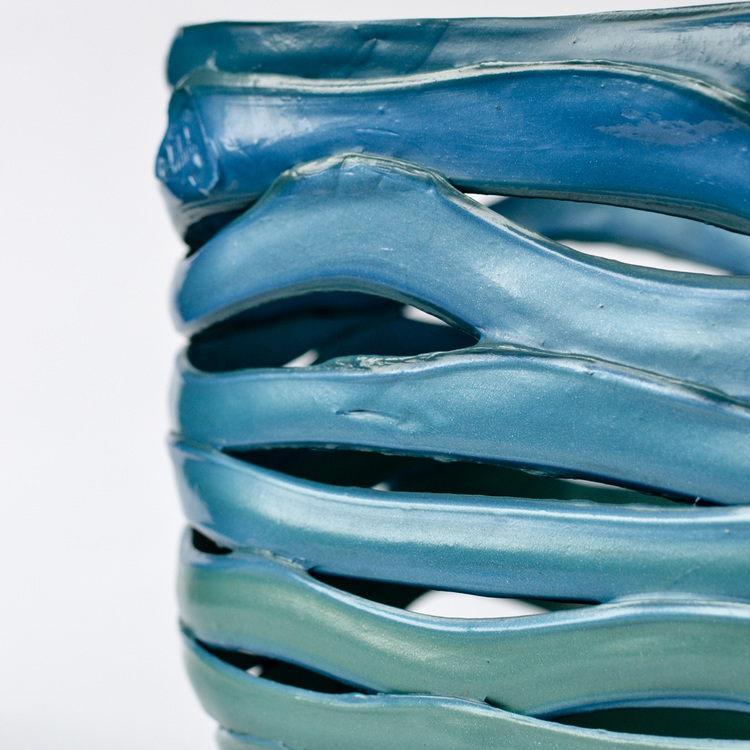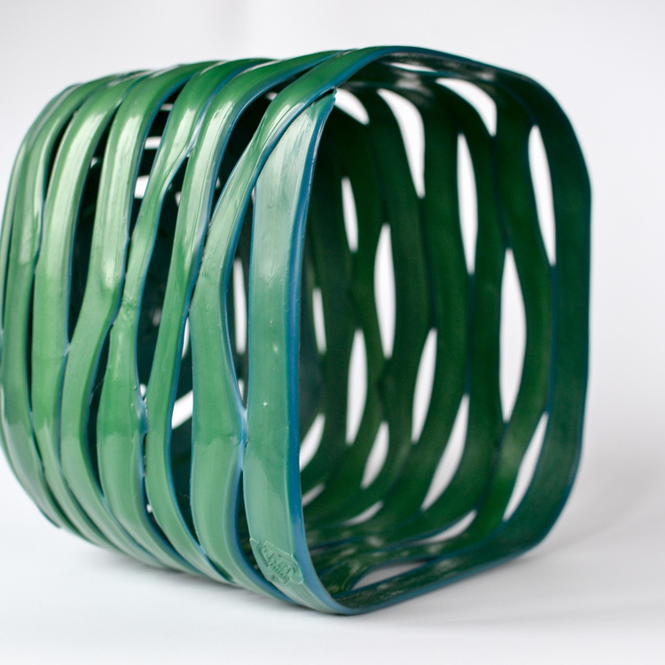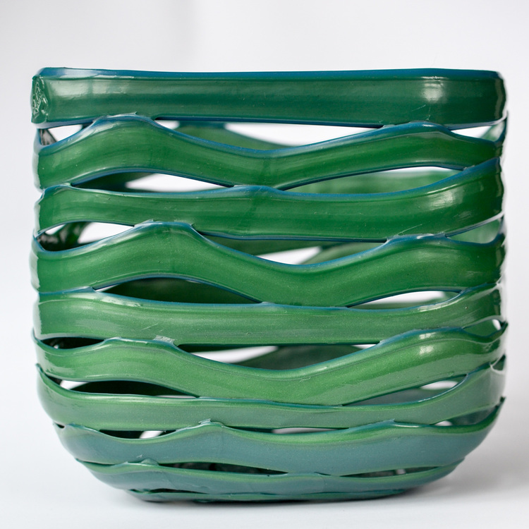 3D printed out of recycled HDPE which was carefully collected and sorted by environmentally conscious people directly for our manufactory. We have reinvented a way to make things and literally grow them in a mesmerizing production process. Every item is unique by mixing different colors of plastic material, melting them together in DIY equipment to get pliable hot thread we use for printing.