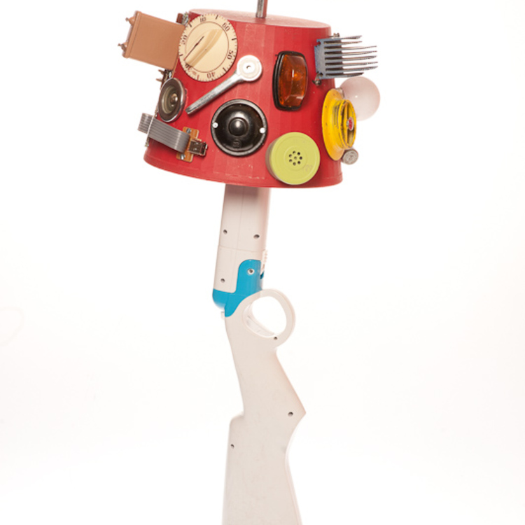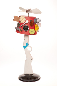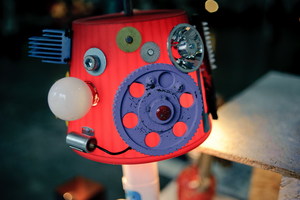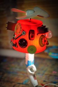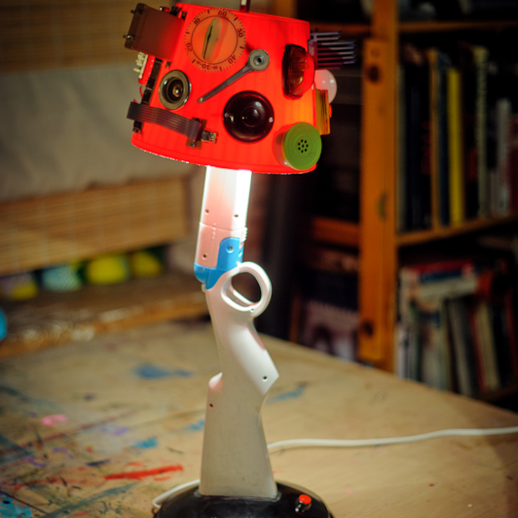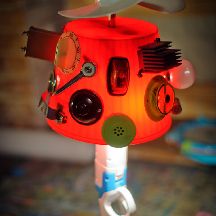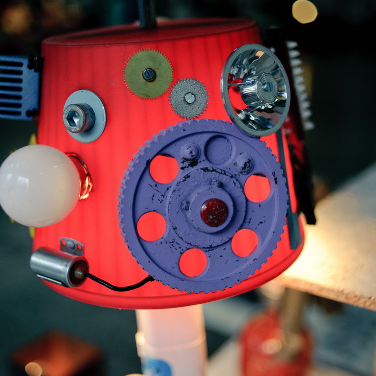 Another weirdo from Herywalery. Some hacking, some upcycling, bi-power of two eco lightbulbs. Shot the light! Nostalgic retrospective from the kid box of Polish communism times. Included: shotgun-firewire adapter, traffic lights cover, lamp shade from Ikea, the speaker of the handset, door viewfinder (so-called Judas in Poland), the heater knob, Fiat 126p turn signal, RAM PC circuit and many other treasures. All tastefully exposed and highlighted.