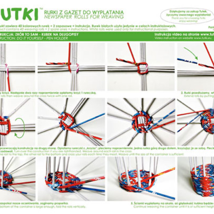 Each Tutki™product (box) contains 42 newspaper rolls for weaving and instructions.